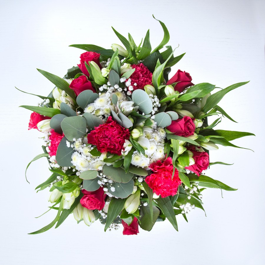 Luxurious Red Roses & White Alstroemeria Arrangement
